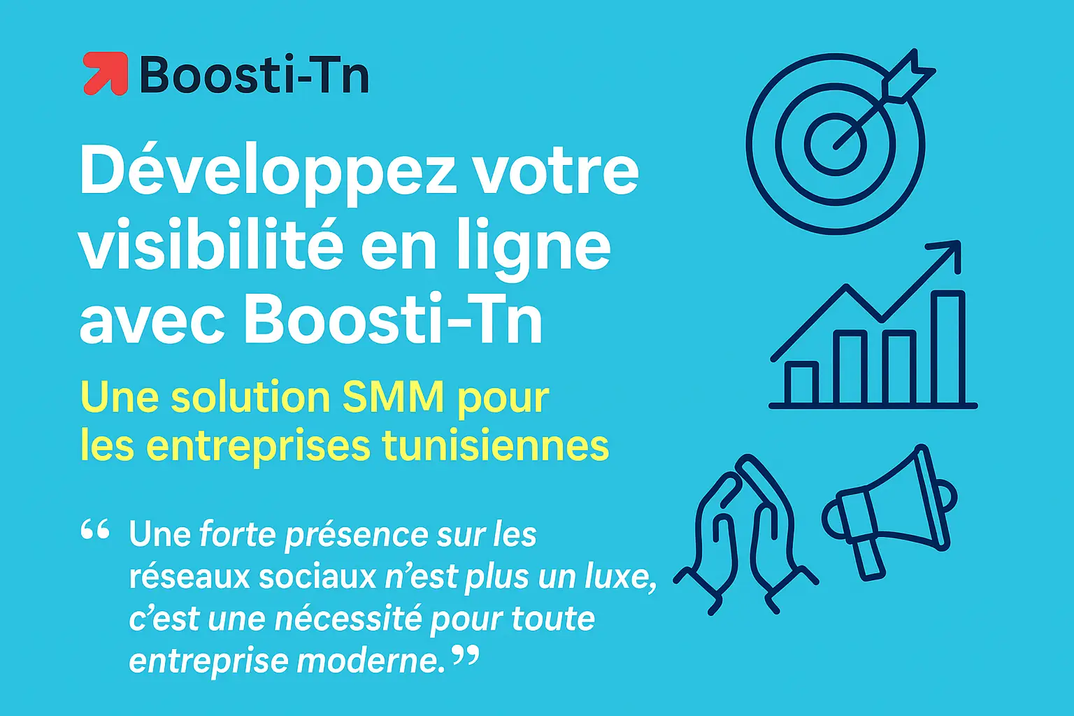 Dans un marché de plus en plus digitalisé, les entreprises tunisiennes doivent impérativement renforcer leur présence en ligne. Que vous soyez un petit commerce local ou une start-up ambitieuse, les services SMM (Social Media Marketing) de Boosti-Tn vous offrent les outils nécessaires pour capter l'attention et fidéliser votre clientèle.
